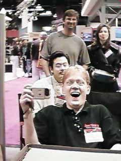 Here's Pasi, support guru from Steinberg North America in the favorite place of all tech geeks, Fry's Electronics. We were buying lots of cool gear for our booth at the NAMM show in Anaheim due to open next day. He's smiling through gritted teeth at just finding out that his credit card is no good. The salesman at Fry's is looking suspicious and calling the bank... Oops!