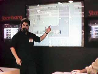 Kord Taylor from Silicon Graphics showing off how amazing their computers are on the Steinberg booth. Can I have a free O2 now please Kord? Please?