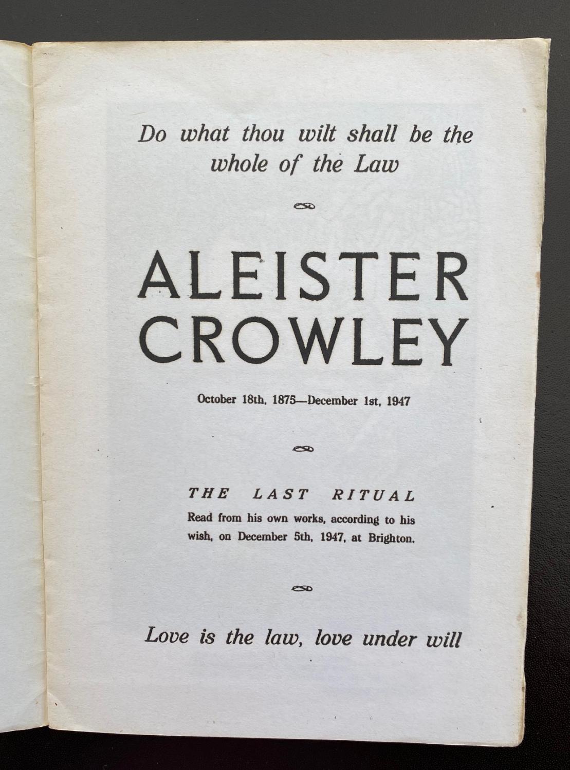 Crowley’s Last Will & Testament, 19th June 1947: