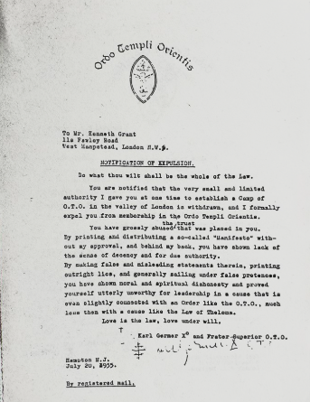 [Note that here Grant specifically and unambiguously names Germer as Head of O.T.O. after Crowley’s death, and as being the source of Grant’s own authority, making a mockery of Grant’s later claims that this was never the case.