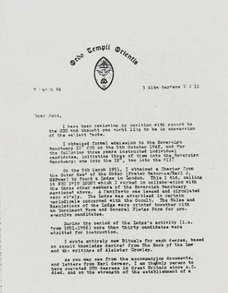 Secondly, I became aware, after the trial, of the letter from Karl Germer to him dated April 20th, 1962, discussing his proposed OTO charter.